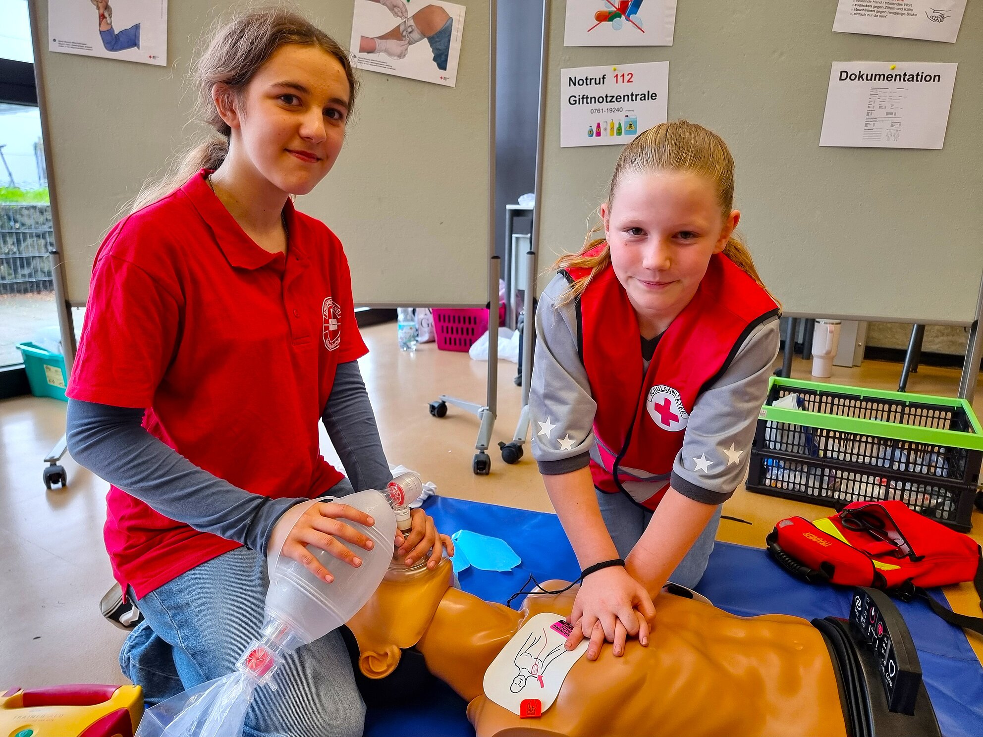 In einem achtstündigen Kurs lernten die Schülerinnen und Schüler der AG, welche Maßnahmen im Notfall zu ergreifen sind.